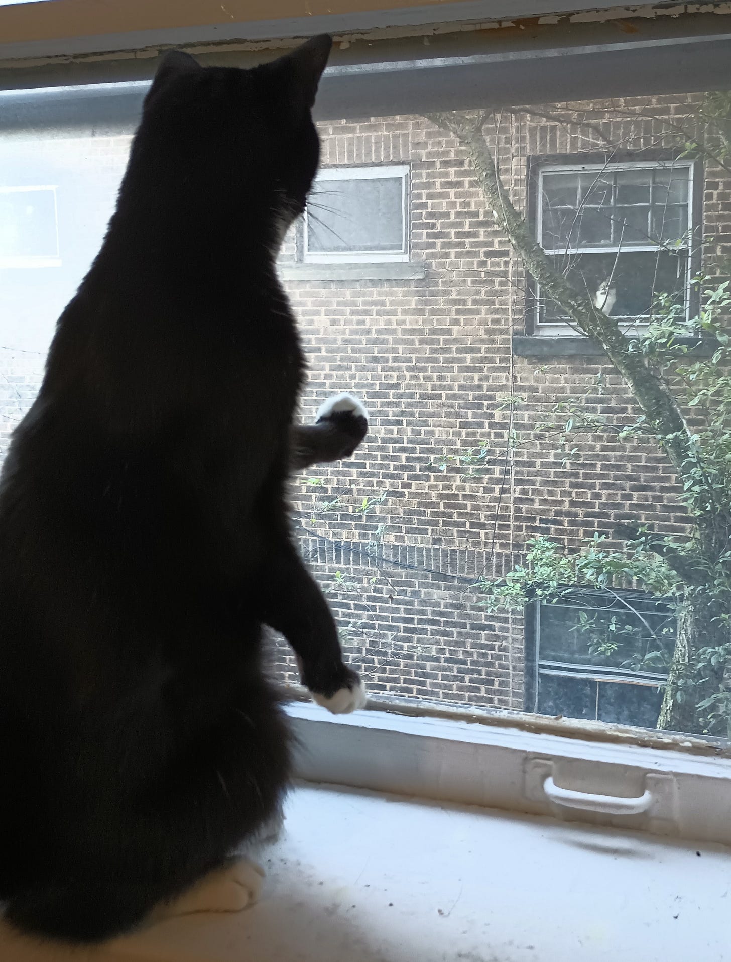 There was a real connection, a meeting of eyes, no more games. Harry put both paws on the window, “this is my belly, I trust you! See how tall I can stretch.”