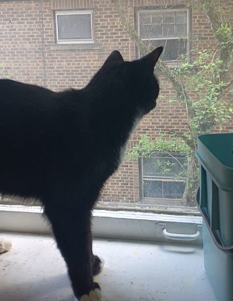 But then she appeared. Stretching in the window and looking for Harry. I called to him, come quick, your love has returned!
